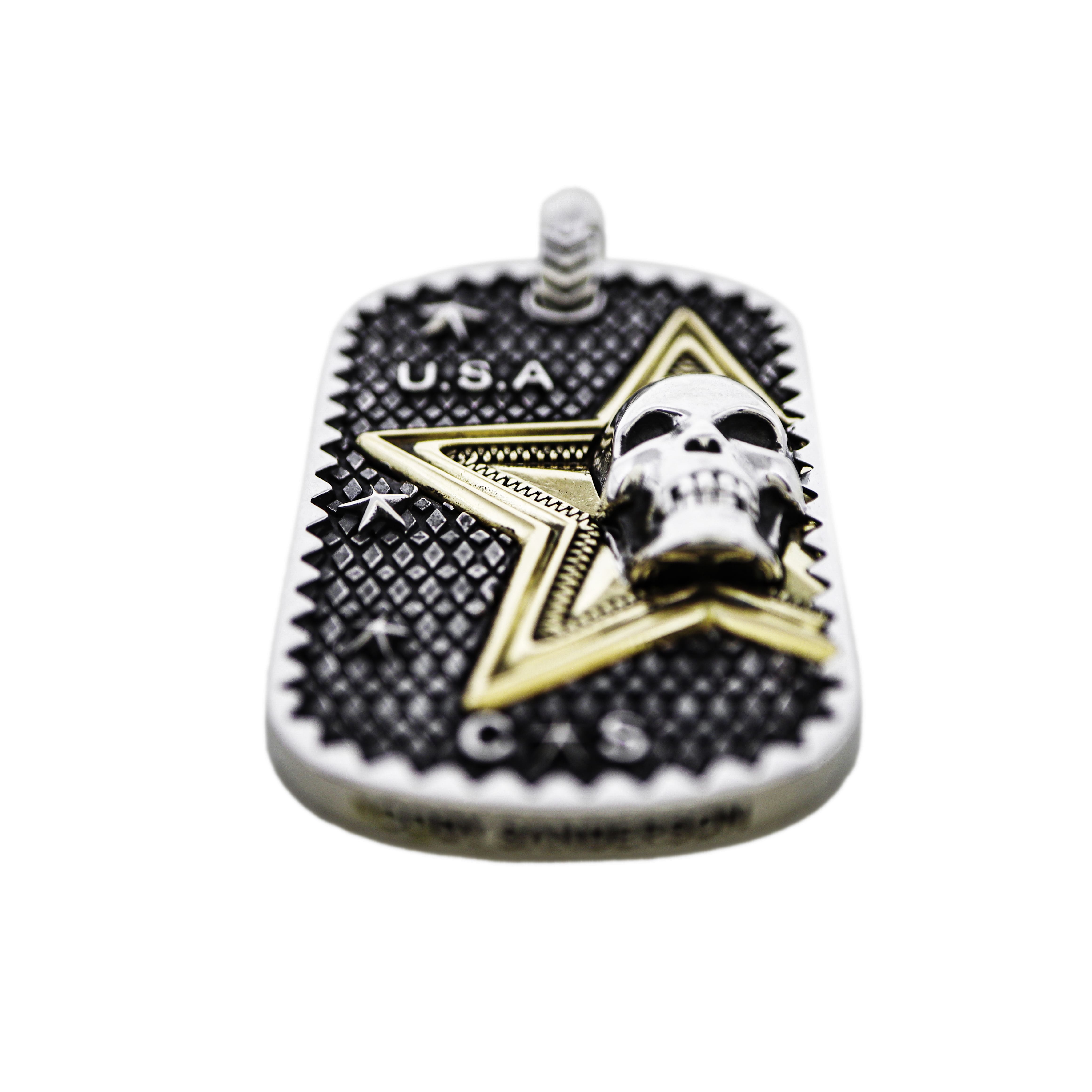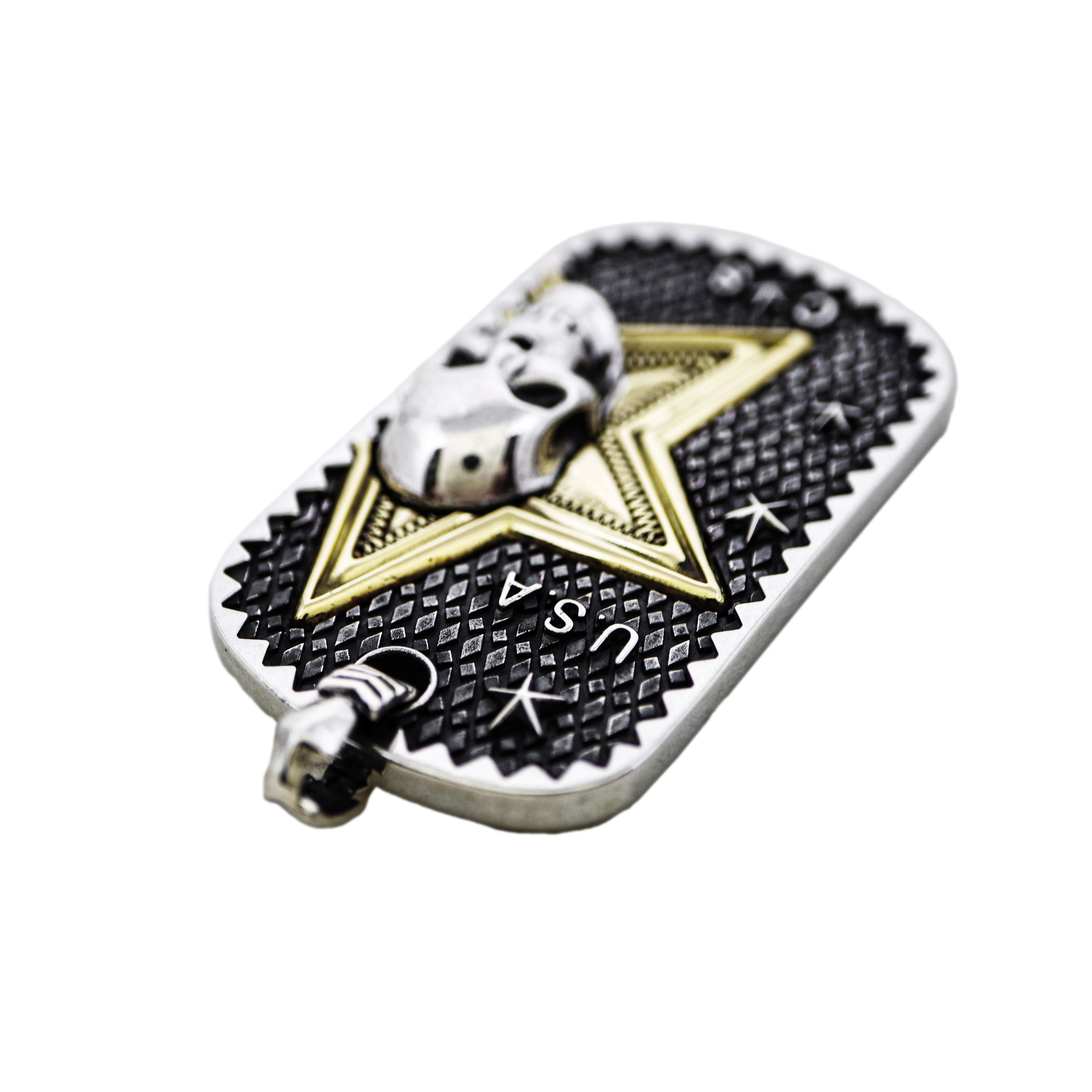 SKULL STAR FIGHT 4 PEACE DOG TAG 925/18K