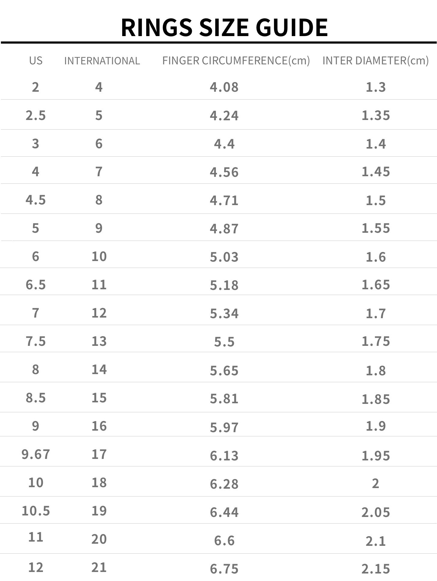 Small size #9 and below: Width: 2cm