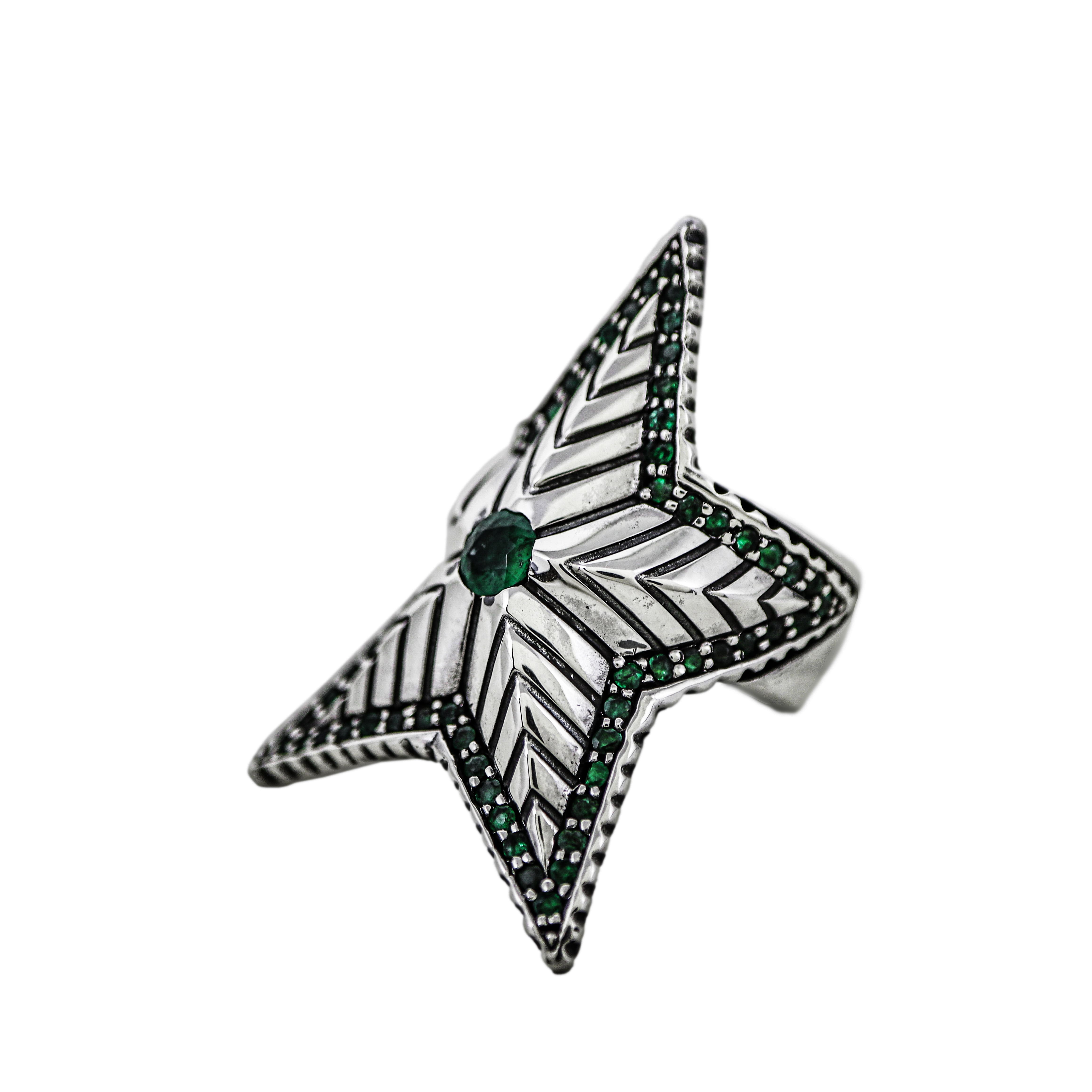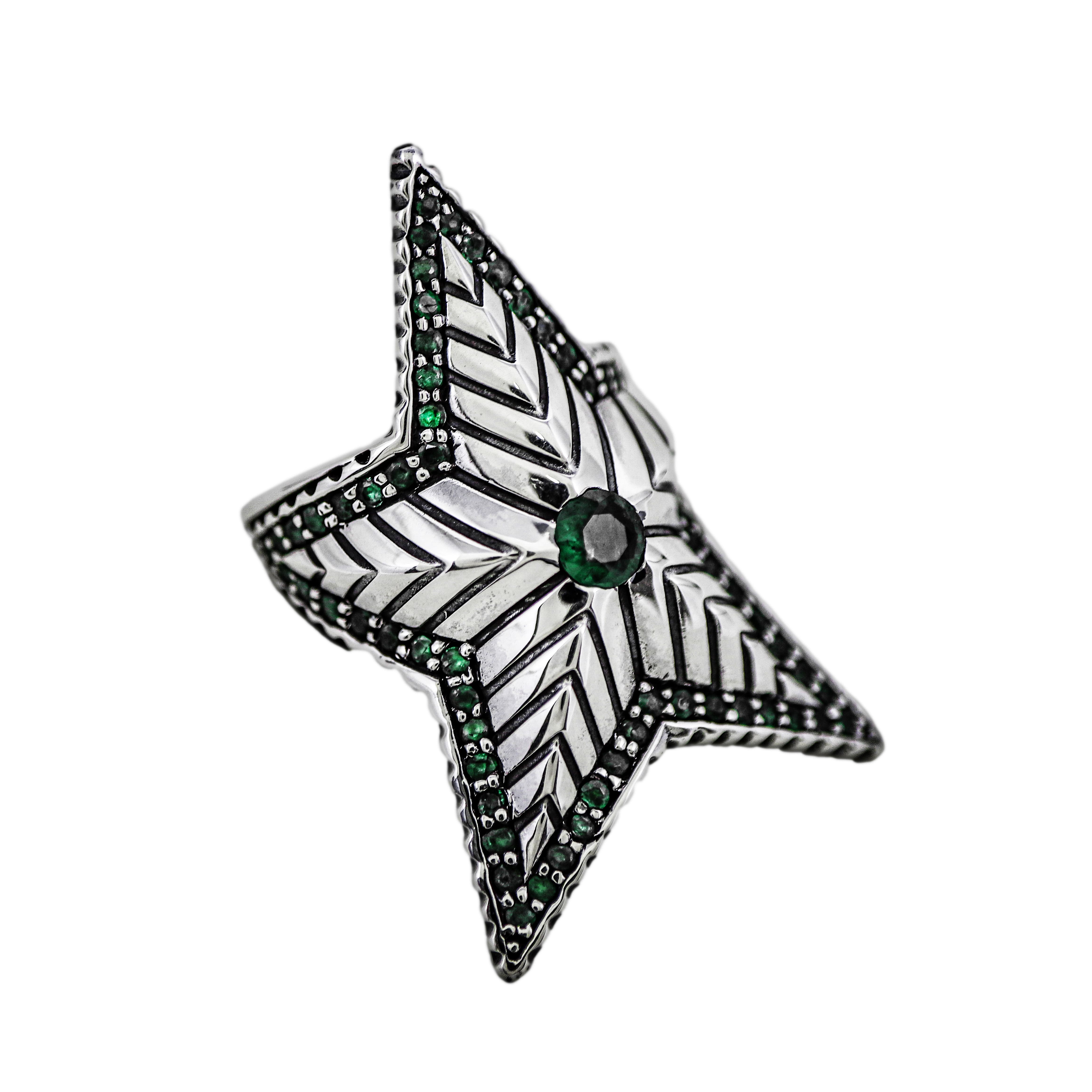 DEPP STAR RING WITH NATURAL STONES - EMERALD