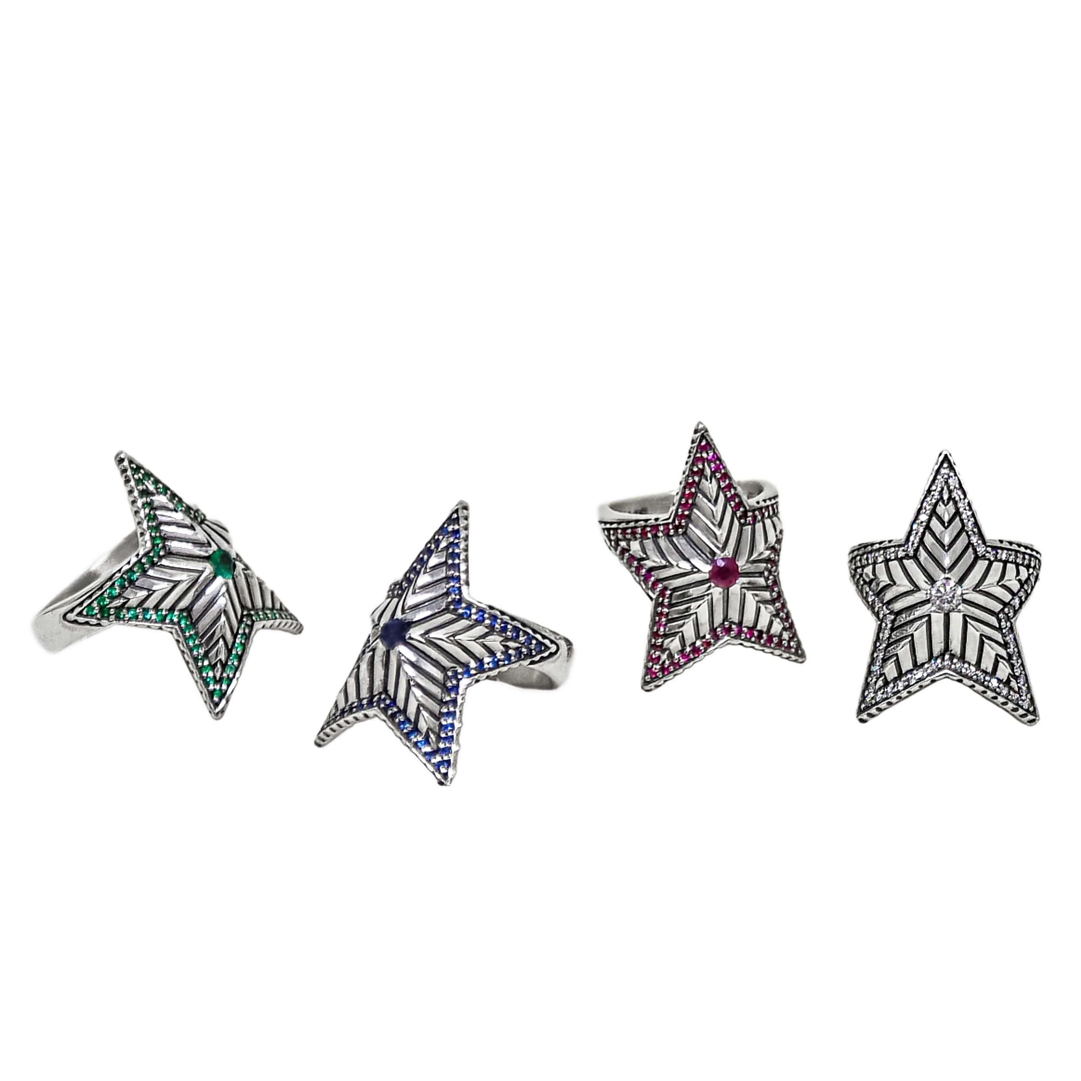 SMALL DEPP STAR RING WITH NATURAL STONES - SAPPHIRE