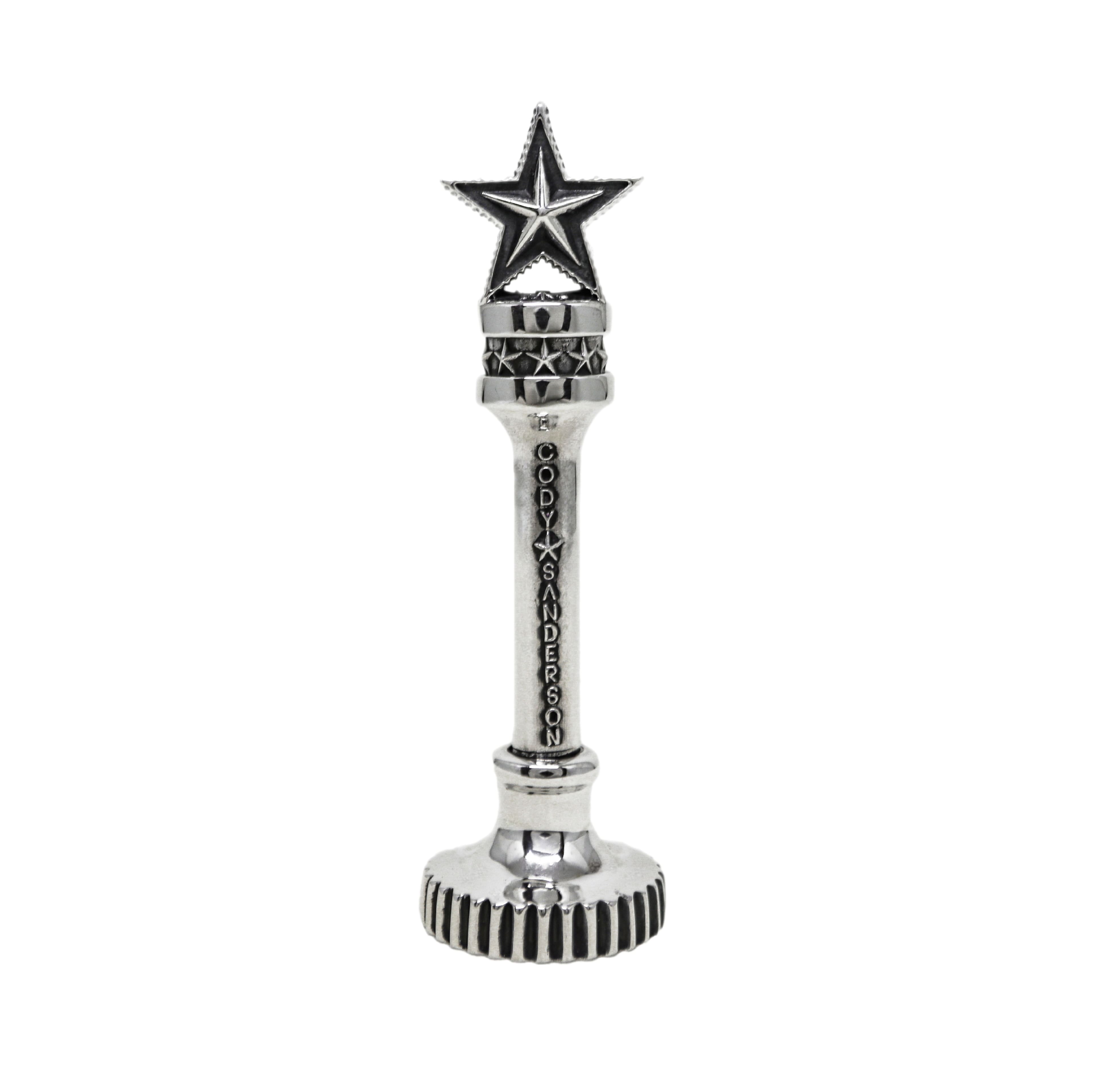A trophy-shaped pendant in the shape of a classic Sheriff star, with a removable Wax Seal at the bottom. The work means that Mr. Sanderson will continue to shoulder the centuries-old spirit of NAVAJO and leave a glorious mark all over the world on the boundless road of artistic creation.
