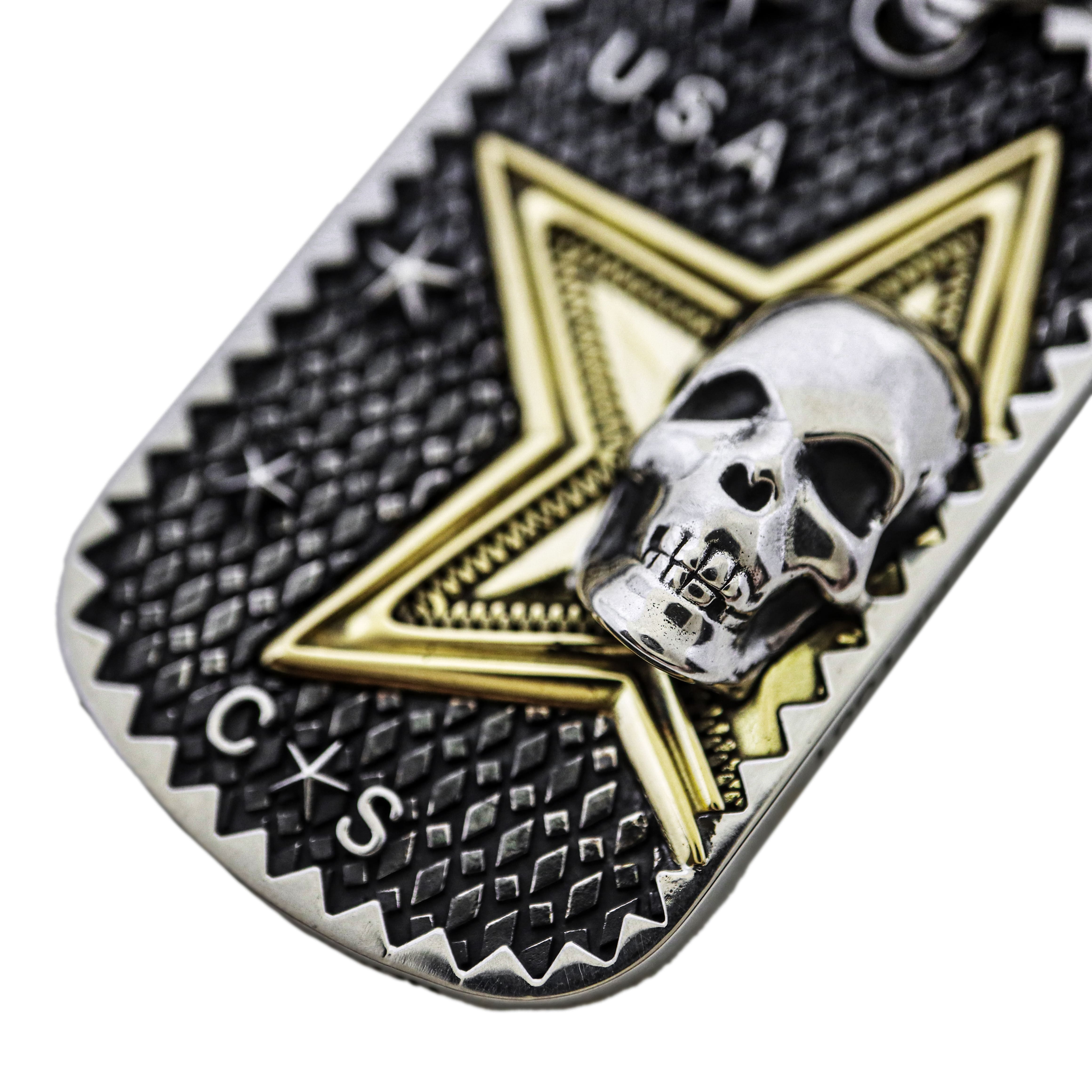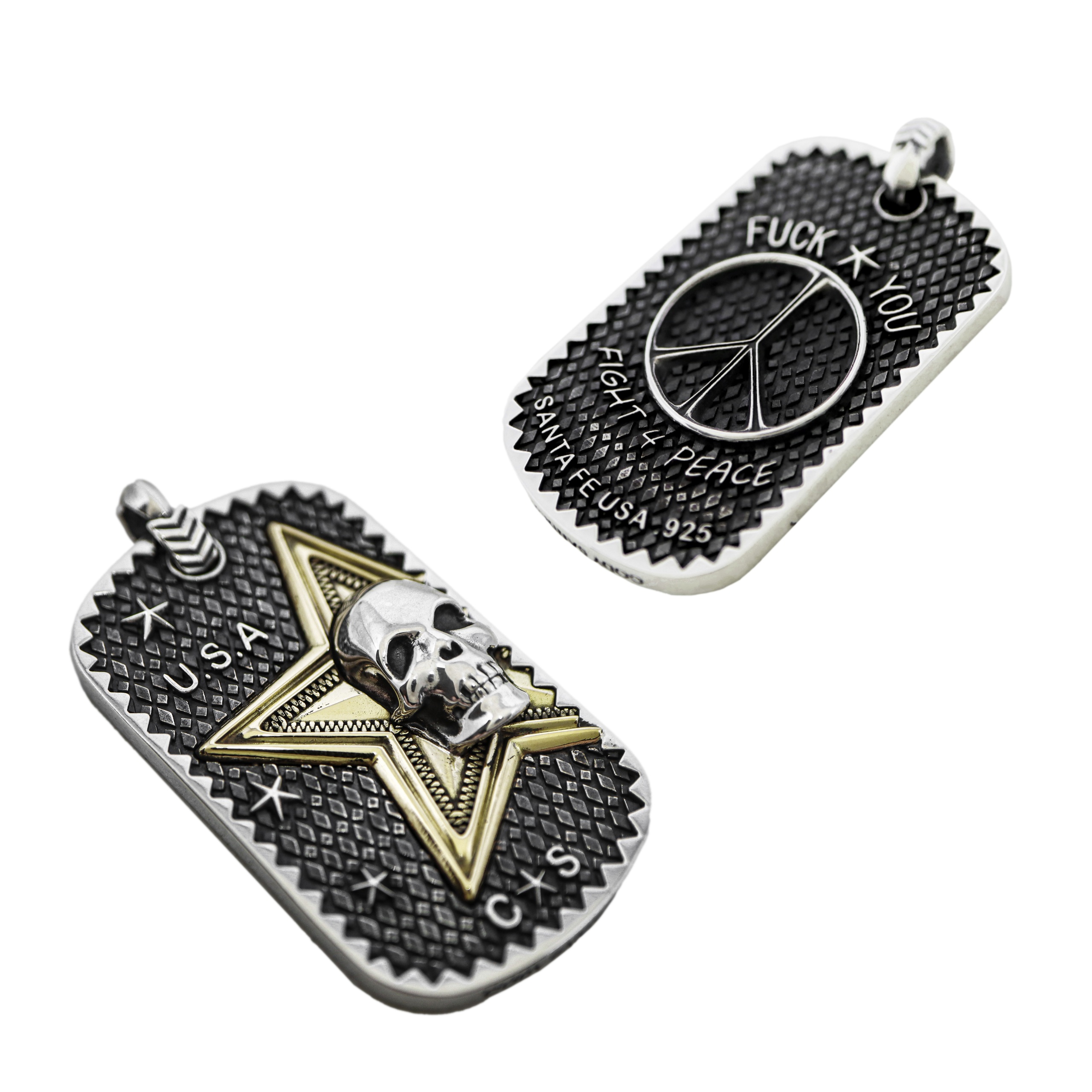 SKULL STAR FIGHT 4 PEACE DOG TAG 925/18K