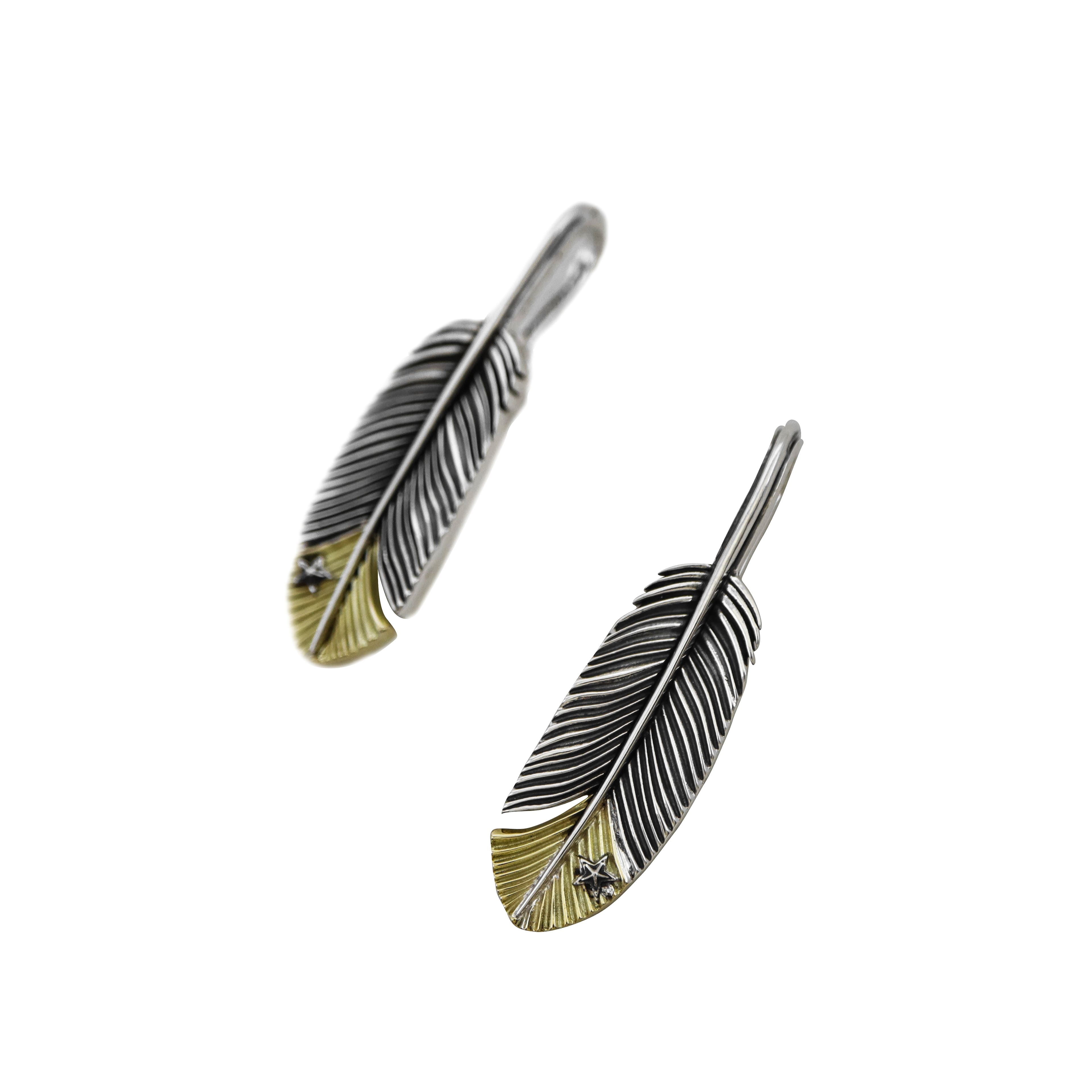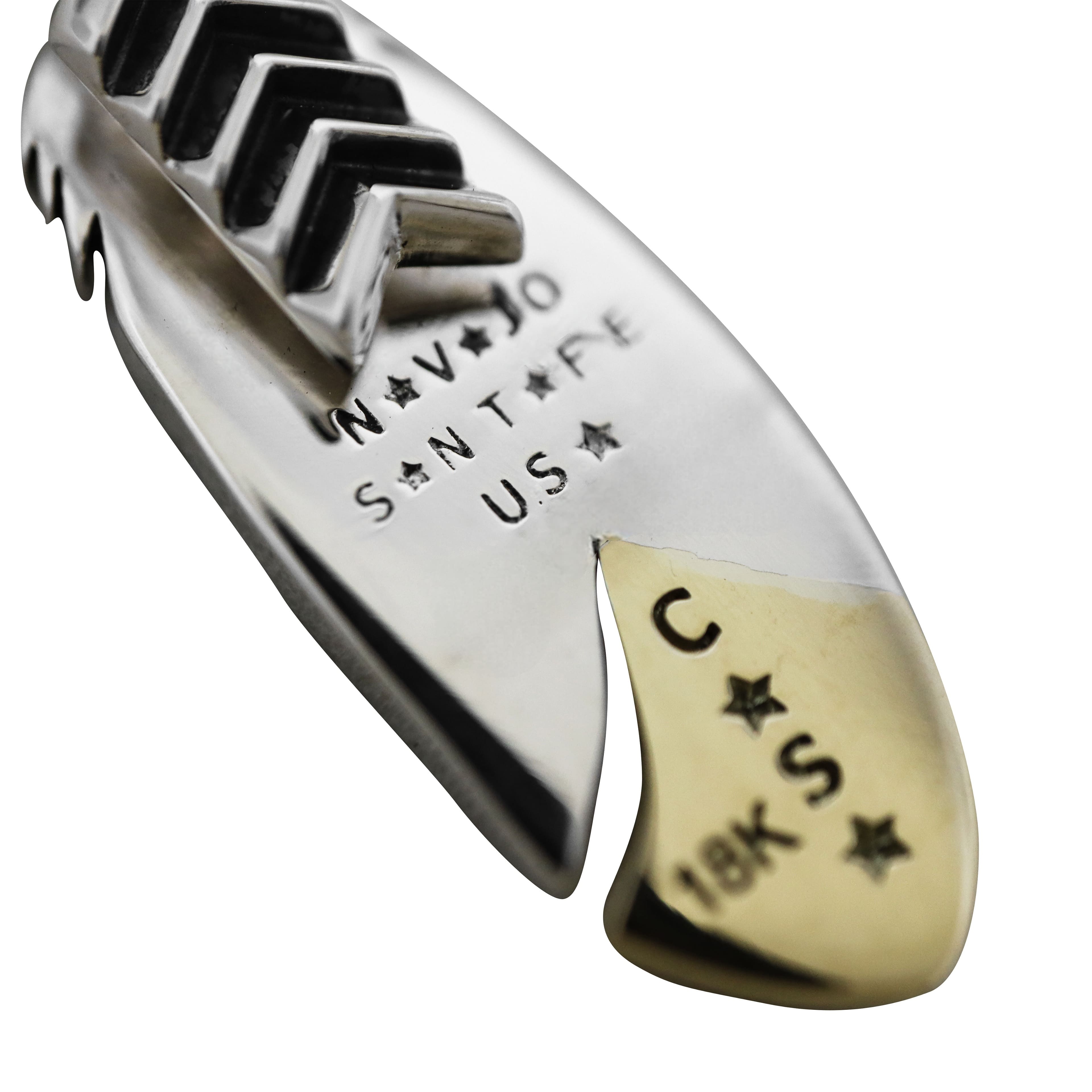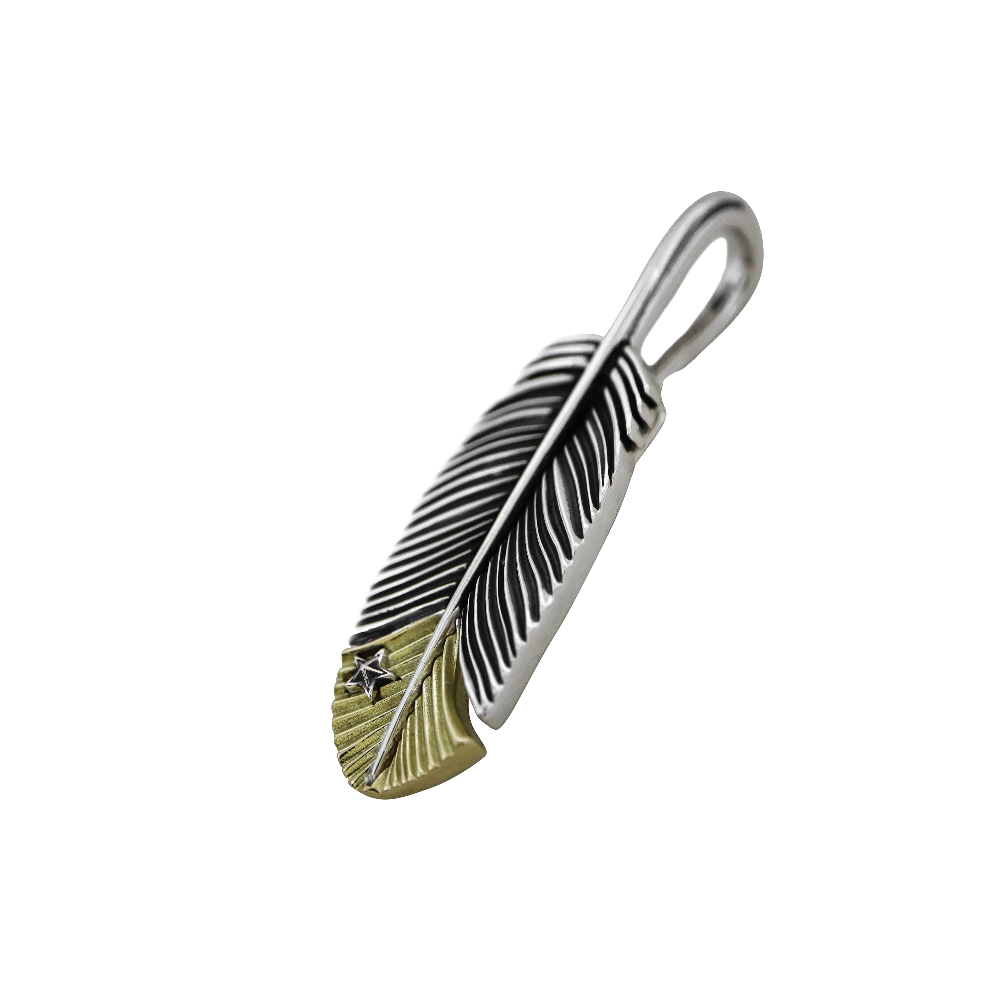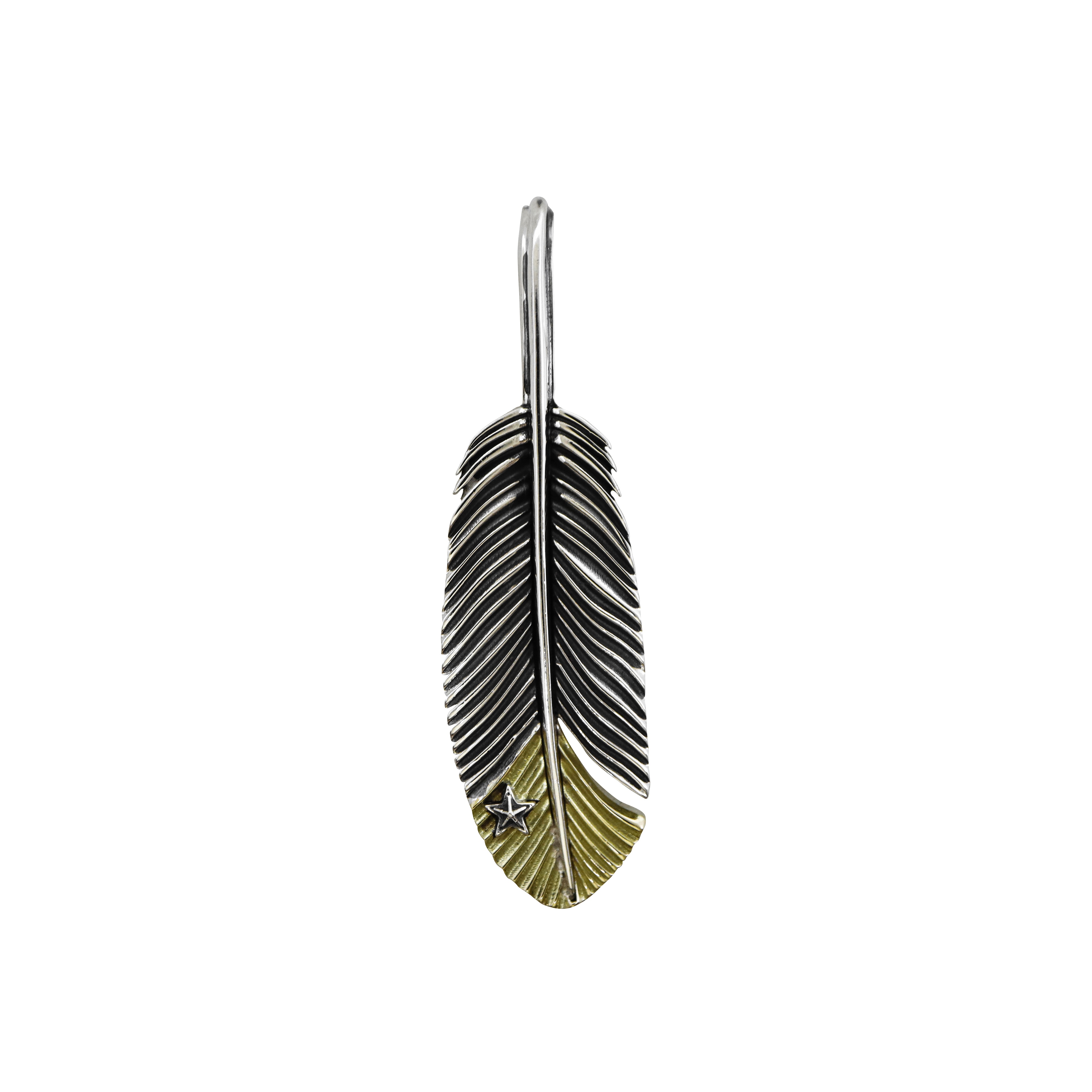 CS NAVAJO TINY STAR ARROW FEATHER RIGHT TWISTED 925/18K PENDANT - 2