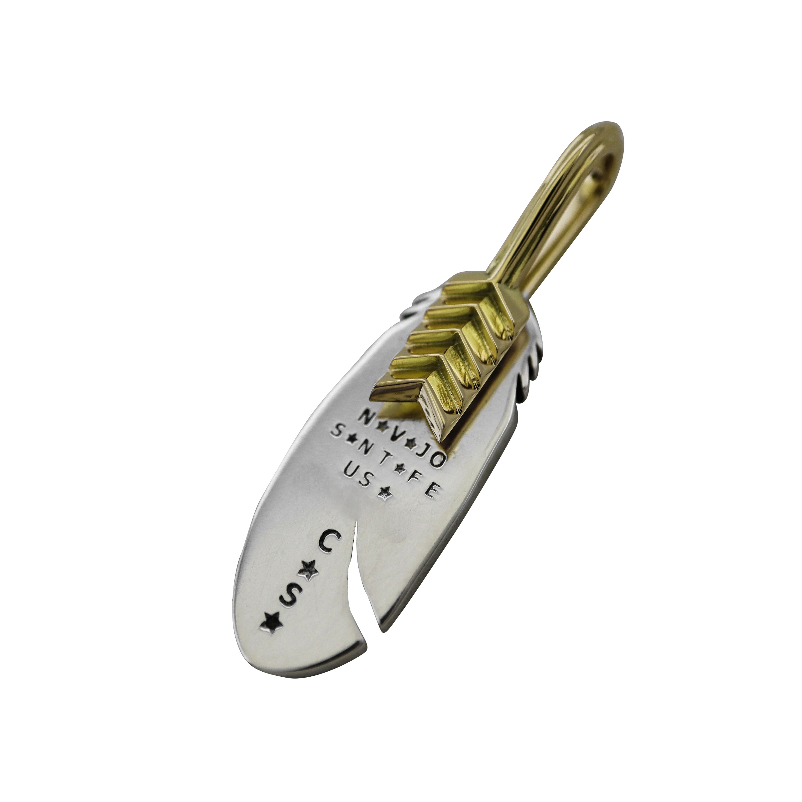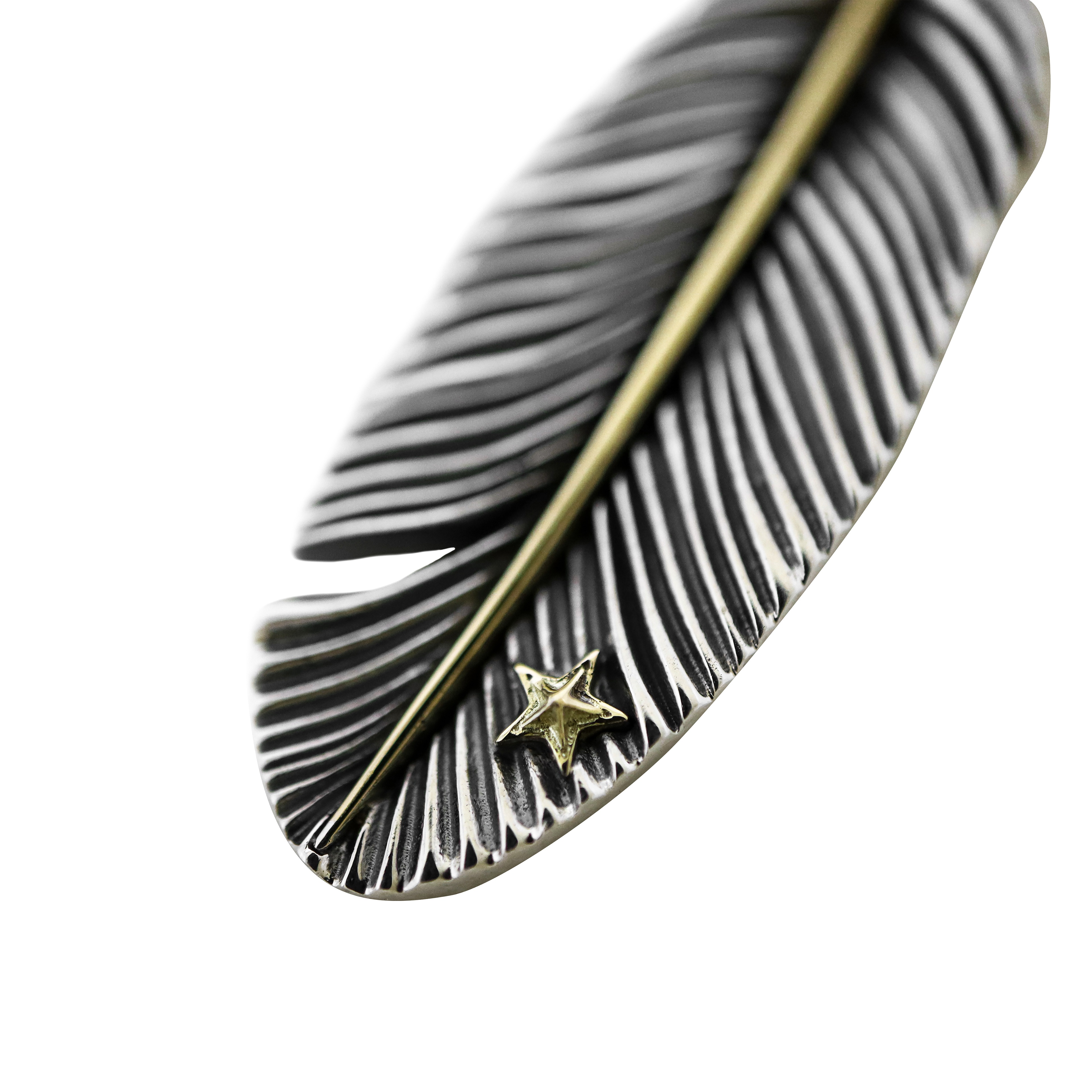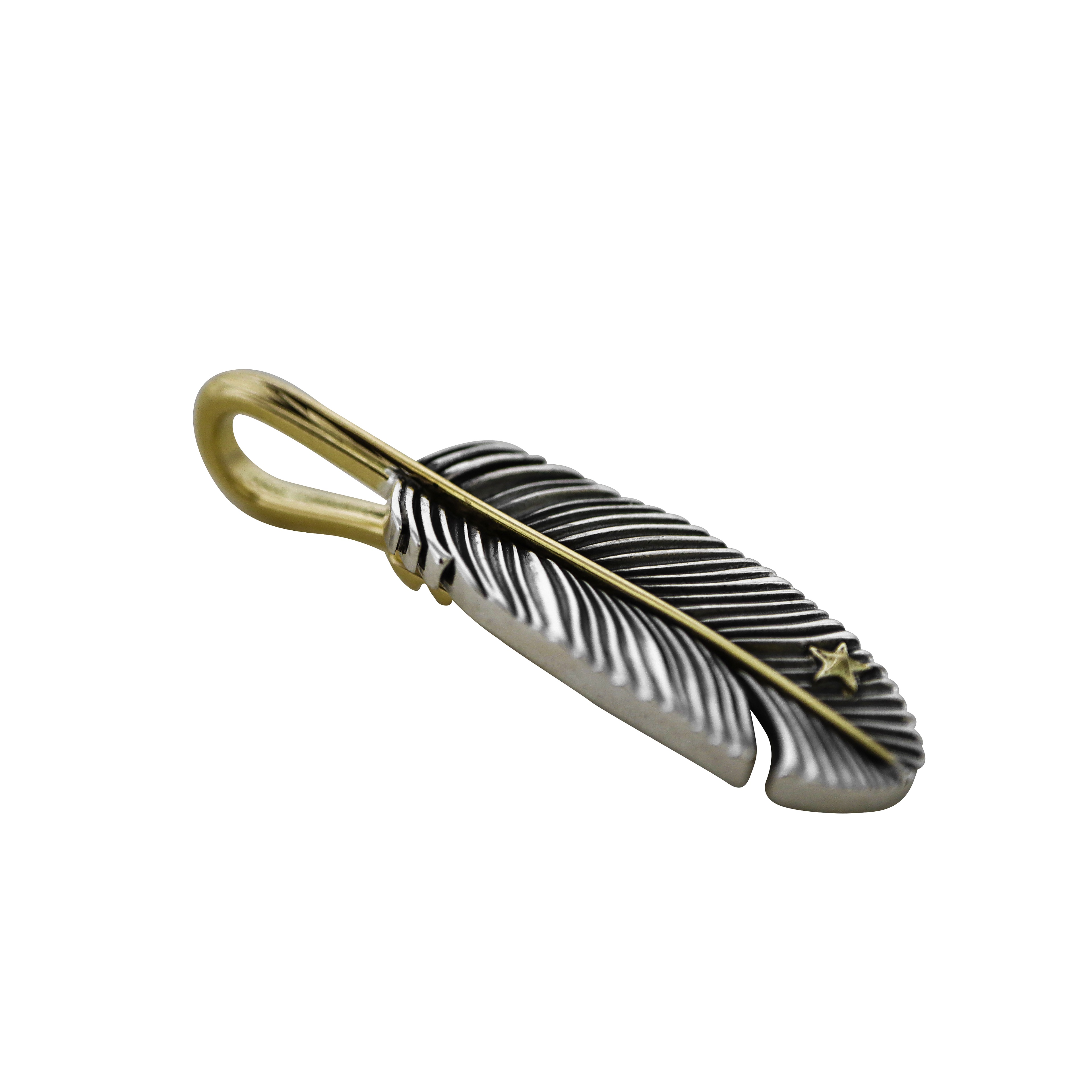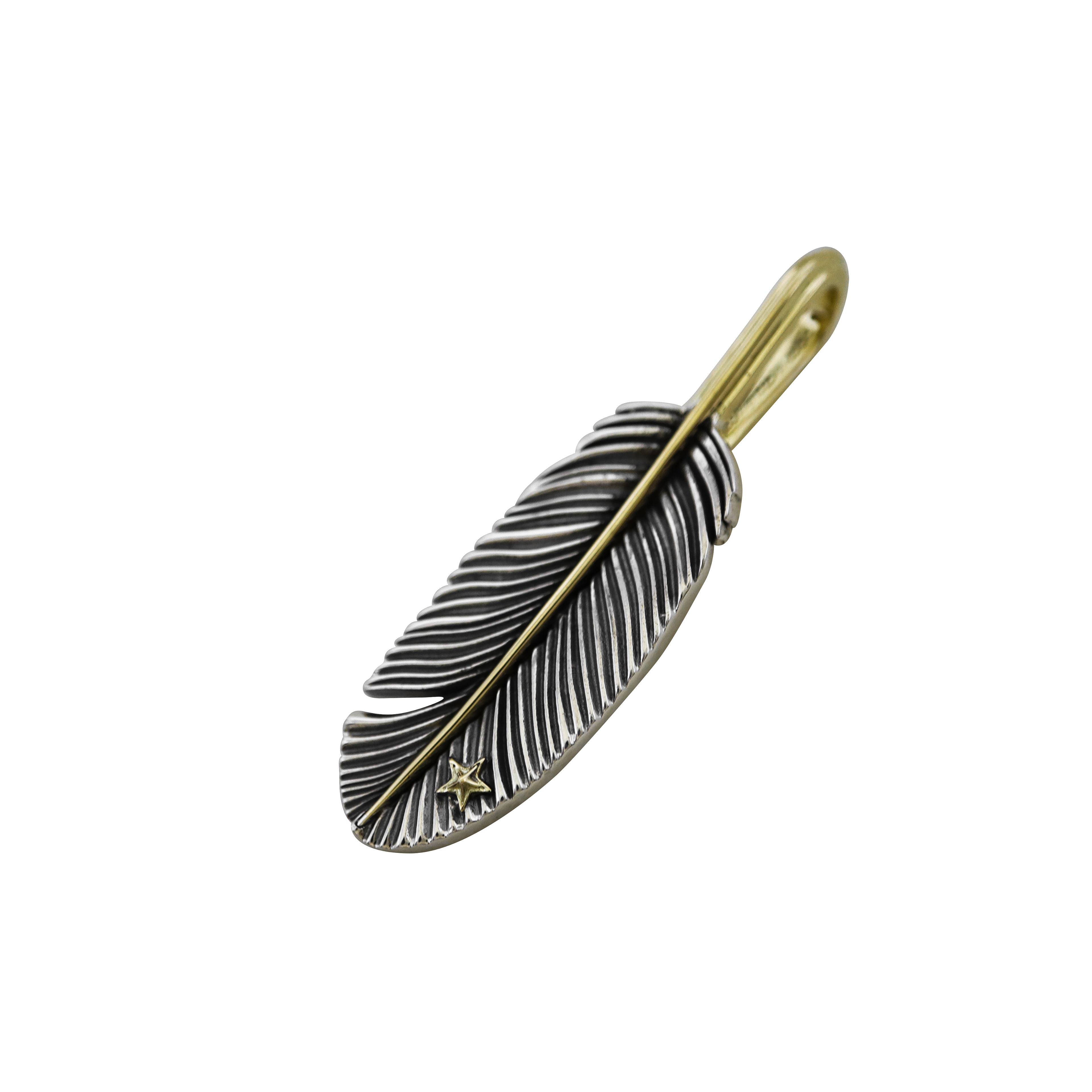 CS NAVAJO TINY STAR ARROW FEATHER LEFT TWISTED 925/18K PENDANT - 1