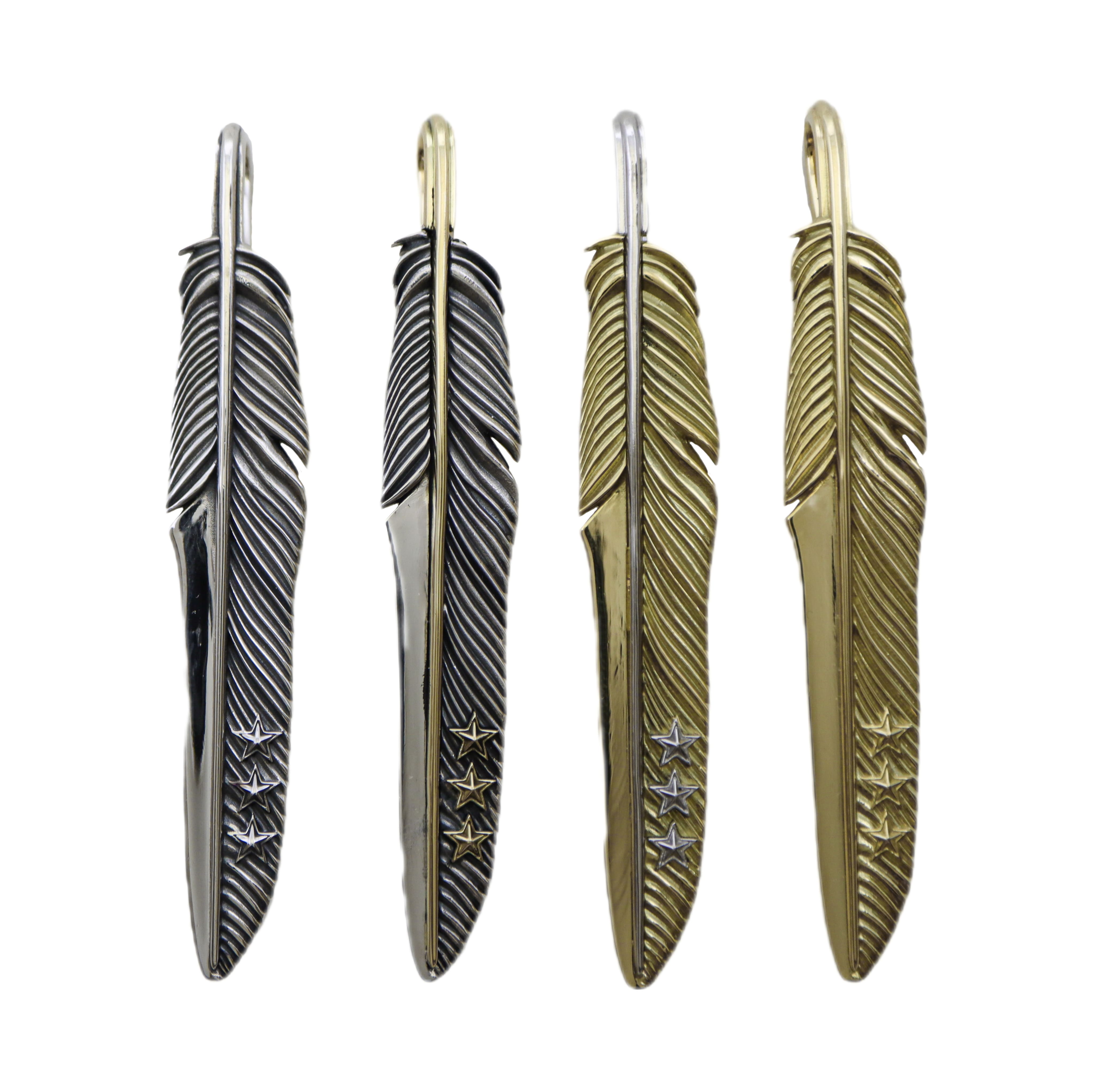 CS NAVAJO TRIPLE STARS ON THE FIRST ARROW FEATHER PENDANT 18K/PLATINUM