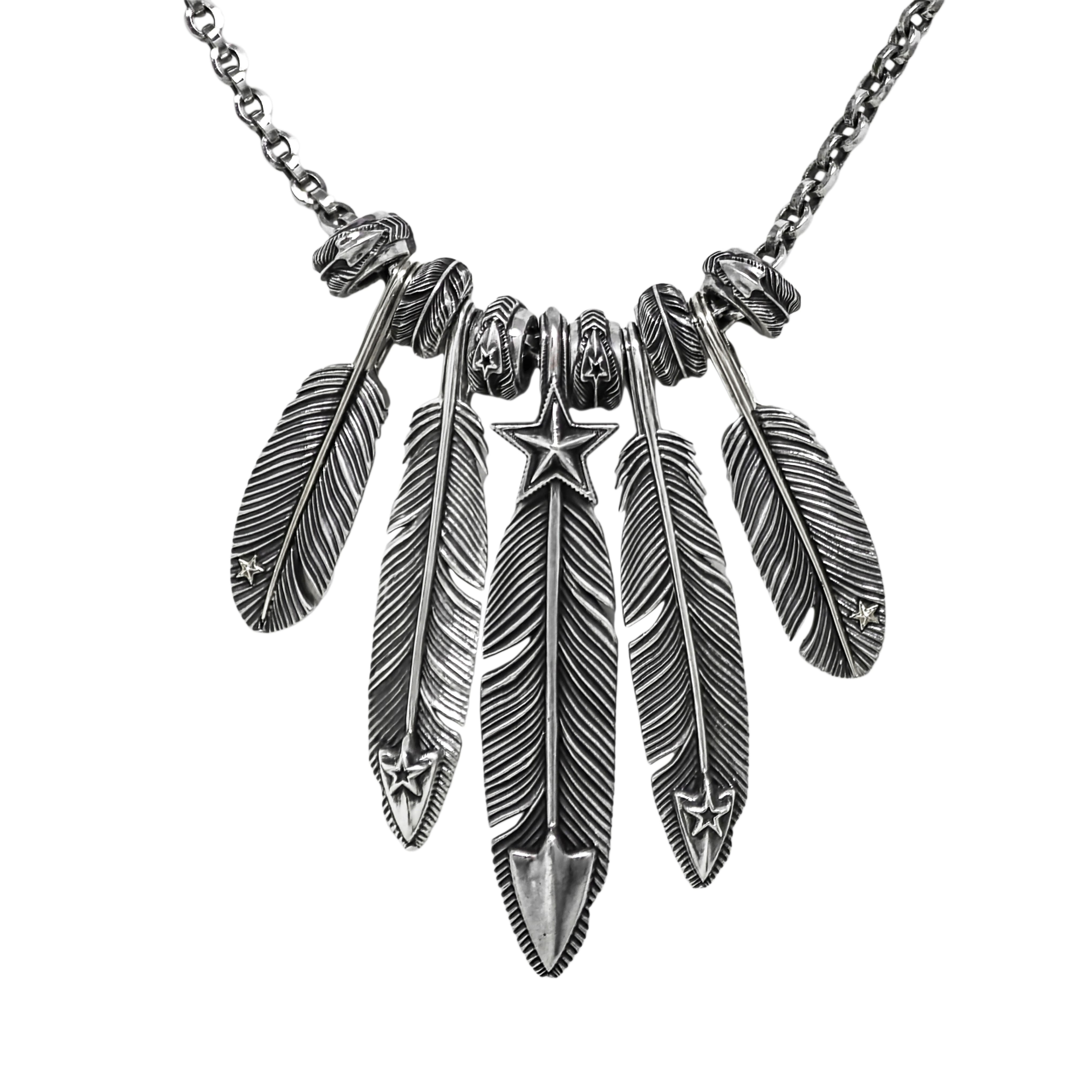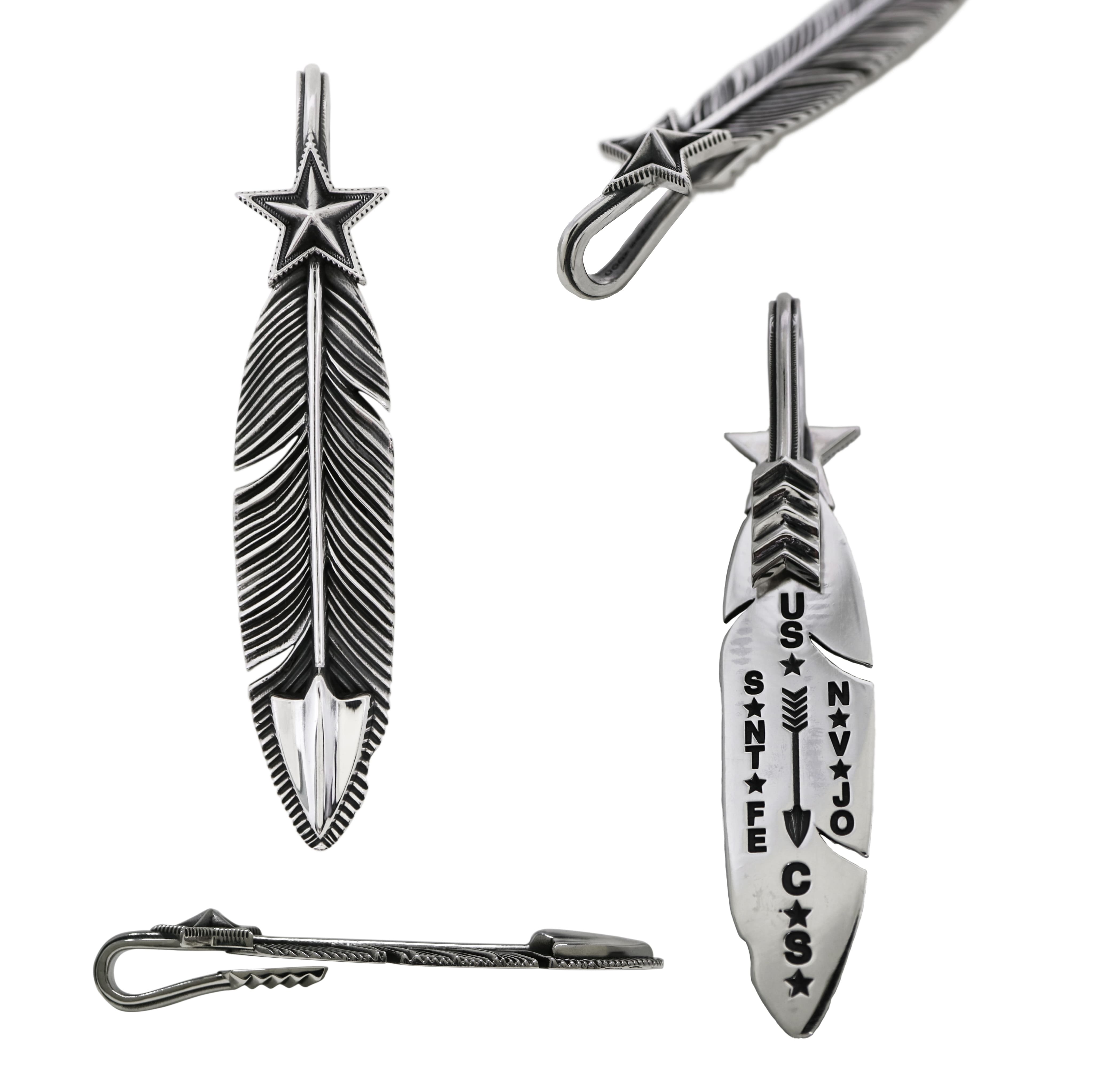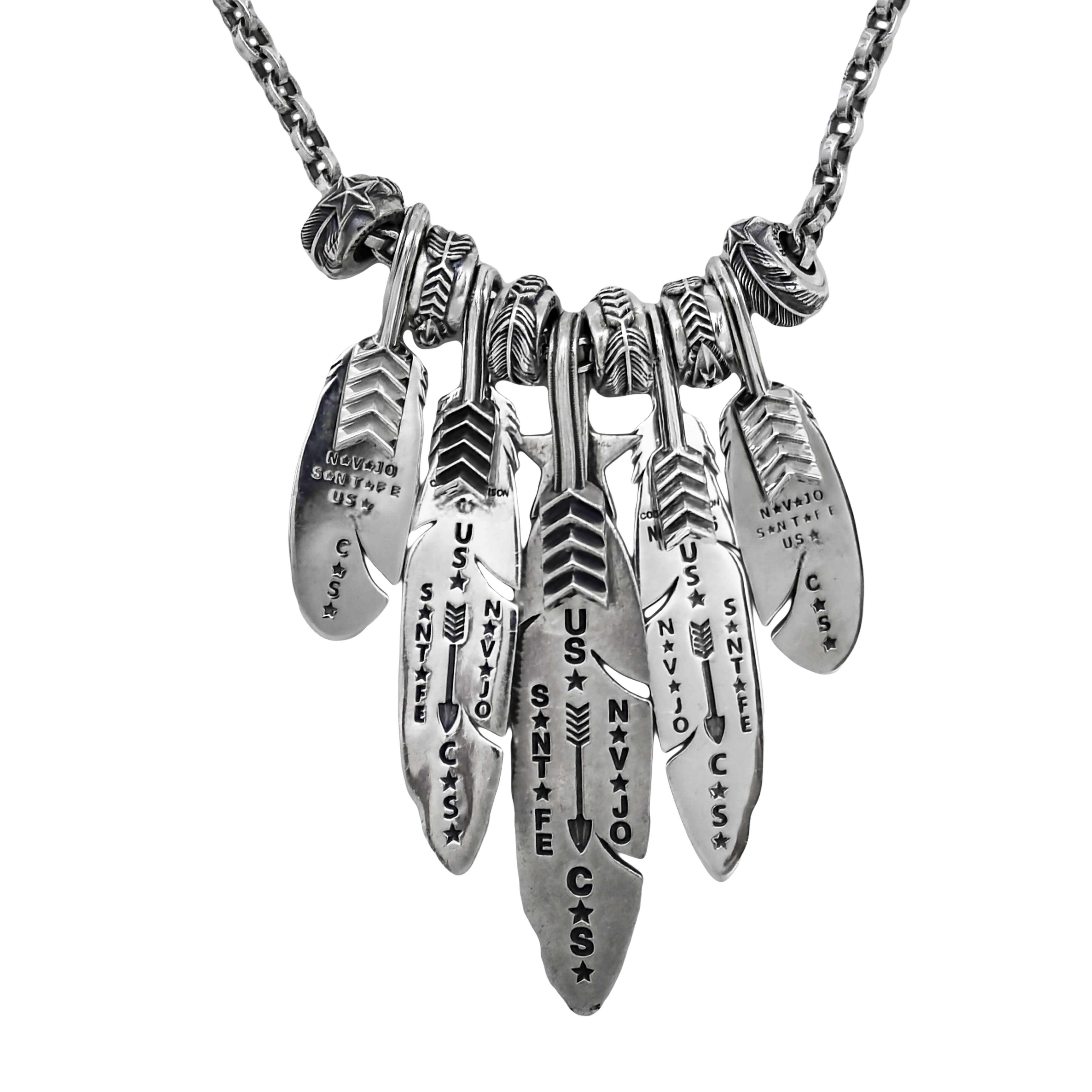 5 in 1 CS NAVAJO SHERIFF STAR ARROW FEATHER NECKLACE WITH 6 FEATHER BEADS