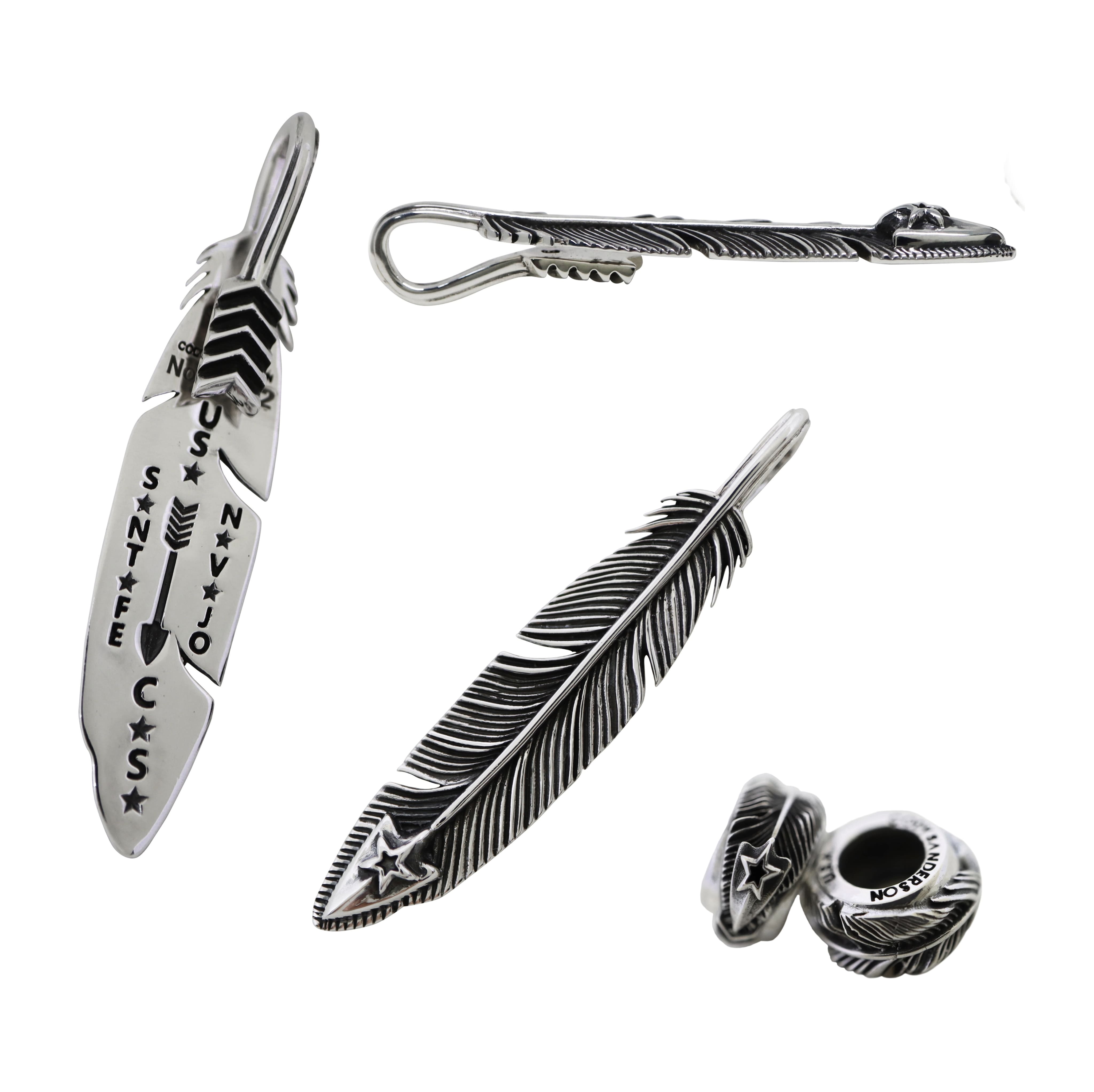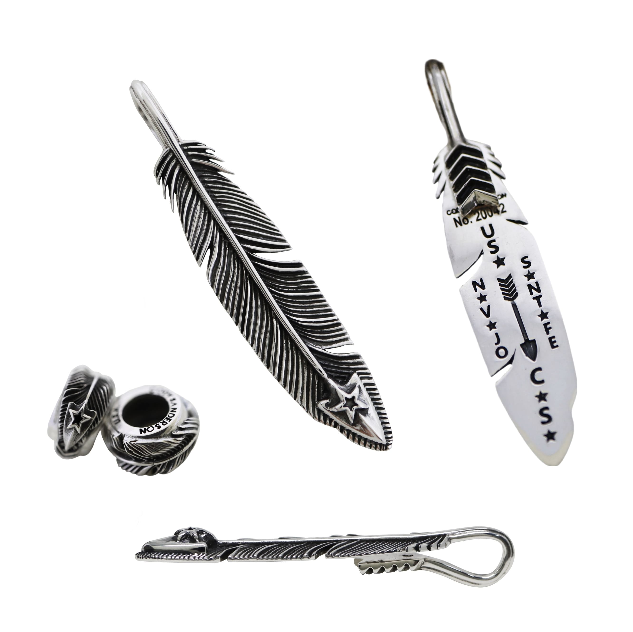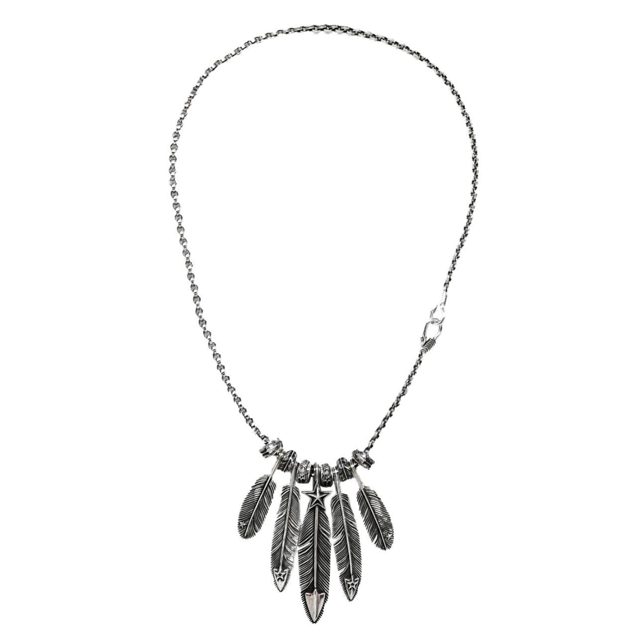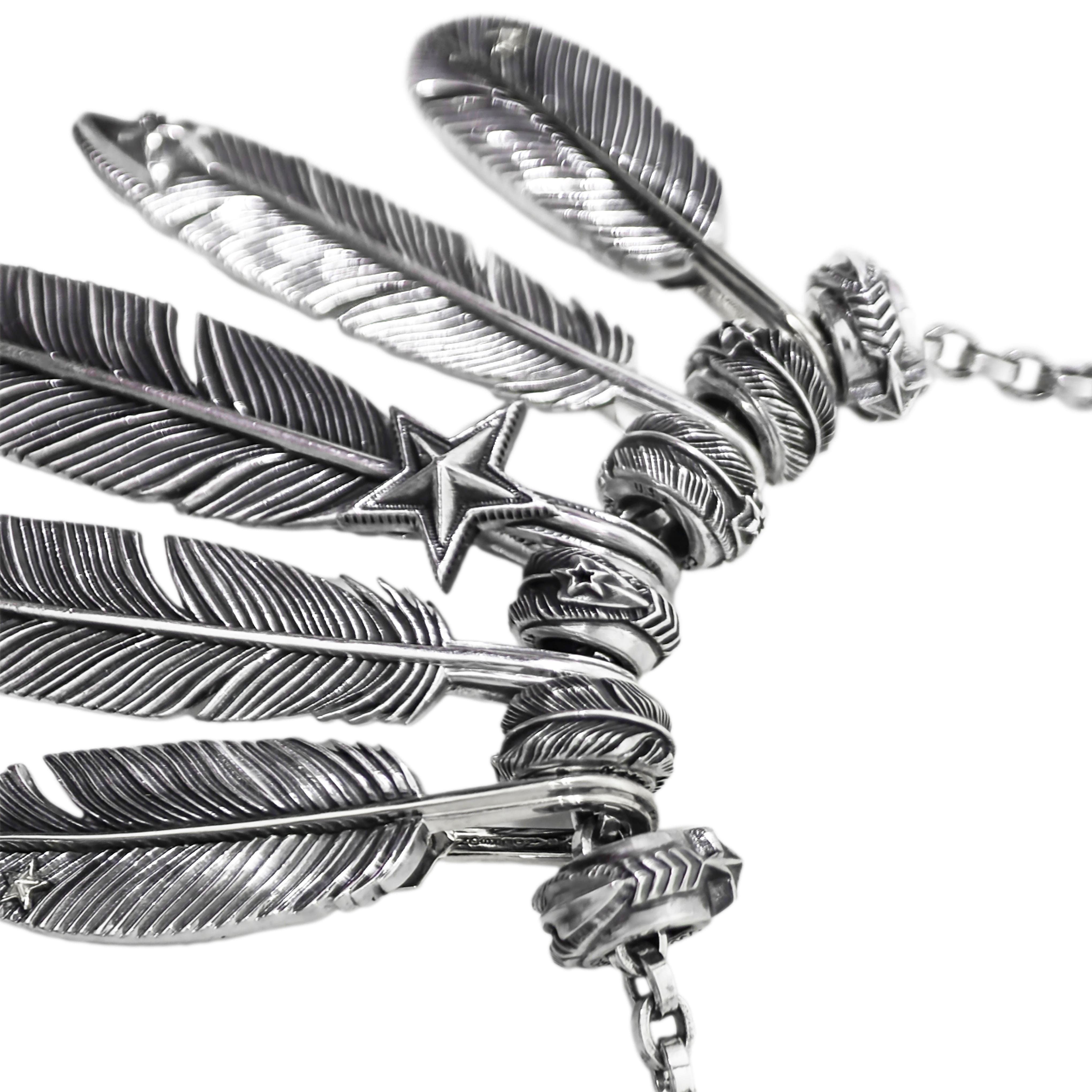 5 in 1 CS NAVAJO SHERIFF STAR ARROW FEATHER NECKLACE WITH 6 FEATHER BEADS
