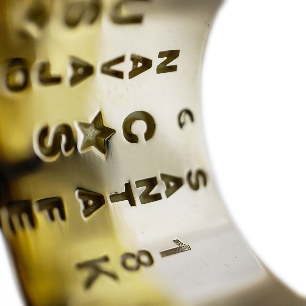 The arched circle and five-pointed star marks align endlessly, indicating the sun, moon, and stars that go round and round and are always full of life force.